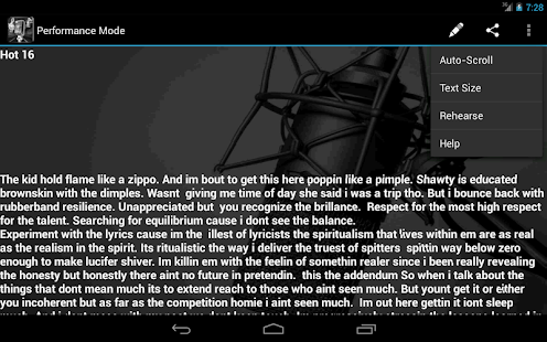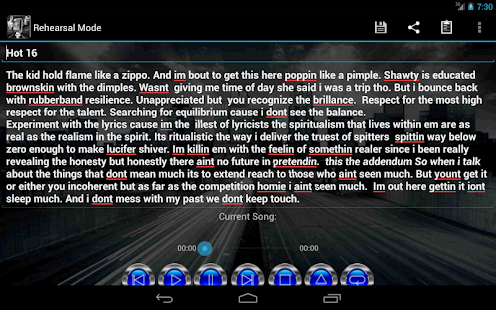 RoadWriter is an application developed to compose music industry professionals , serious composers and artists who need a simple, but effective way to write and create songs in a changing environment . Designed by artists for artists, RoadWriter lets you write , organize and share letters while on the road or on tour. While test mode allows you to select your instrumentals and songs with verses complete projects , bridges , hooks , climbing, coda, etc, Performance Mode provides a complete display of your song completed in legible text due to the arrangement of words against a contrast background . The screen does not darken to avoid losing your place or interrupt their productivity. From this screen , you can quickly edit any changes in place so you can continue making her voice in a performance or recording booth environment.